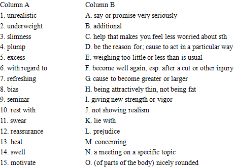 phrase in Column A by choosing one from Column B. (15%)
