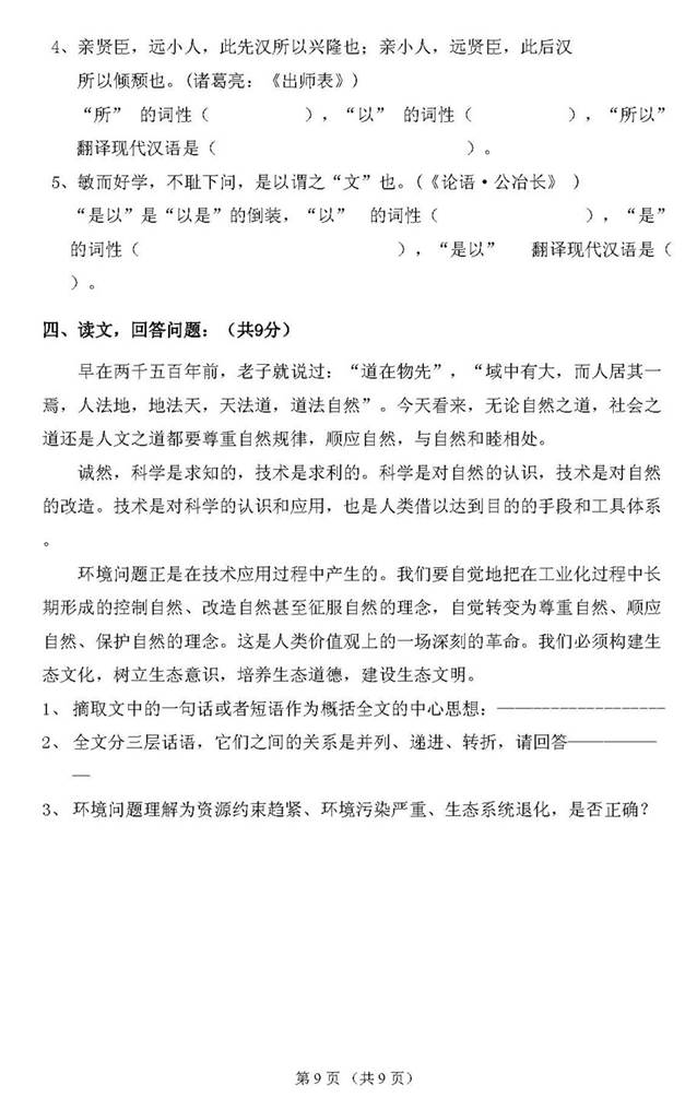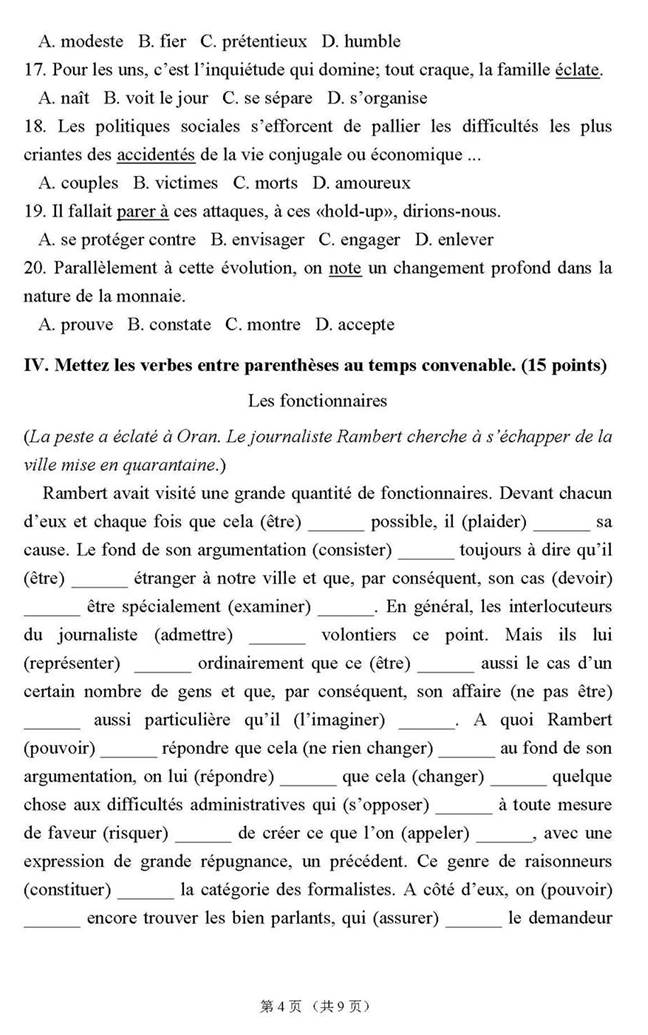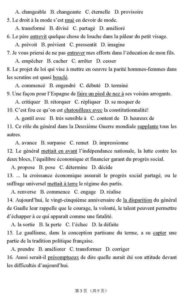 2009年天津外国语大学703(基础法语+汉语)考研真题