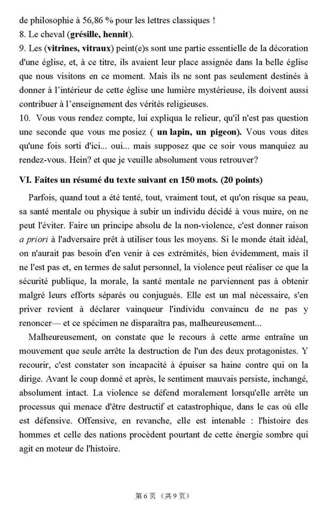 2006年天津外国语大学703(基础法语+汉语)考研真题