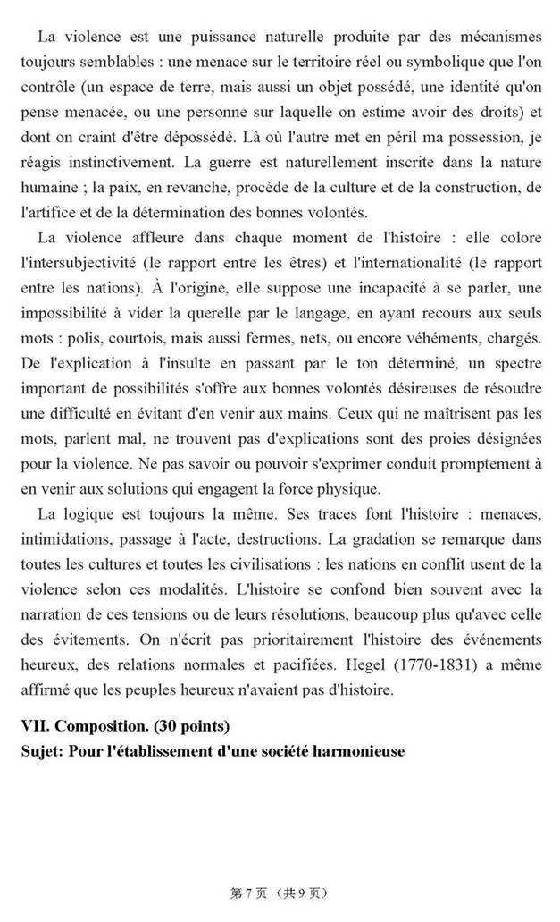 2007年天津外国语大学703(基础法语+汉语)考研真题