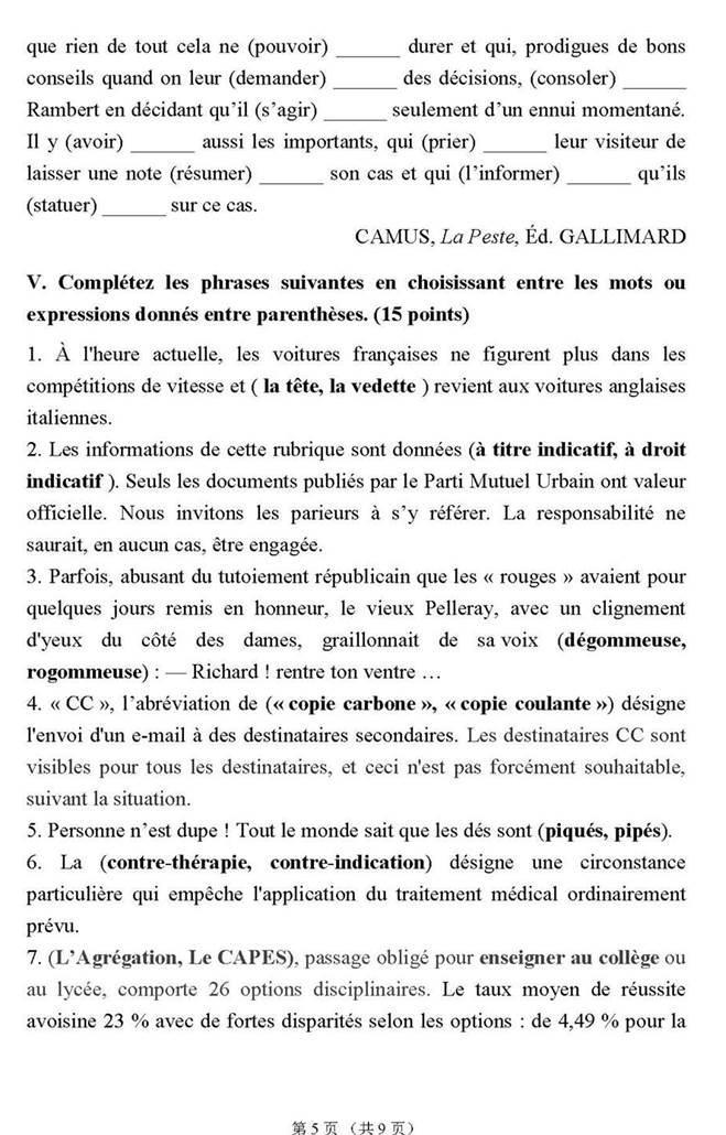 2005年天津外国语大学703(基础法语+汉语)考研真题