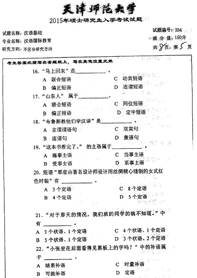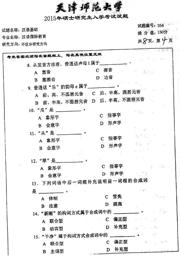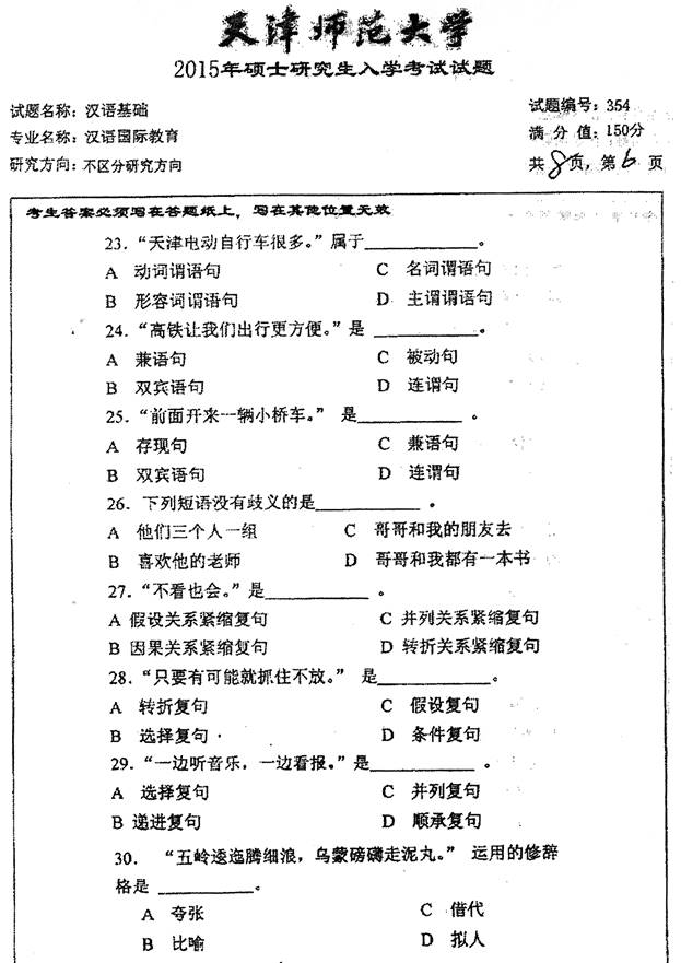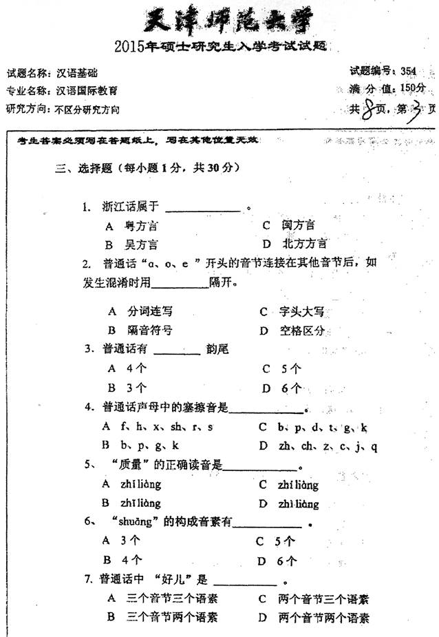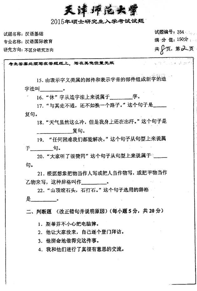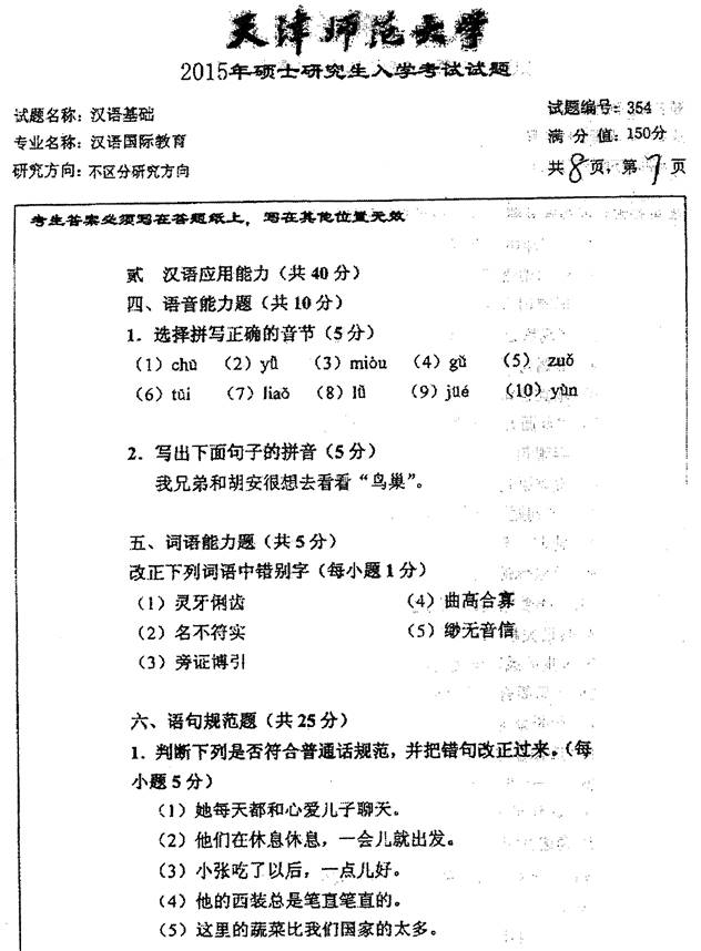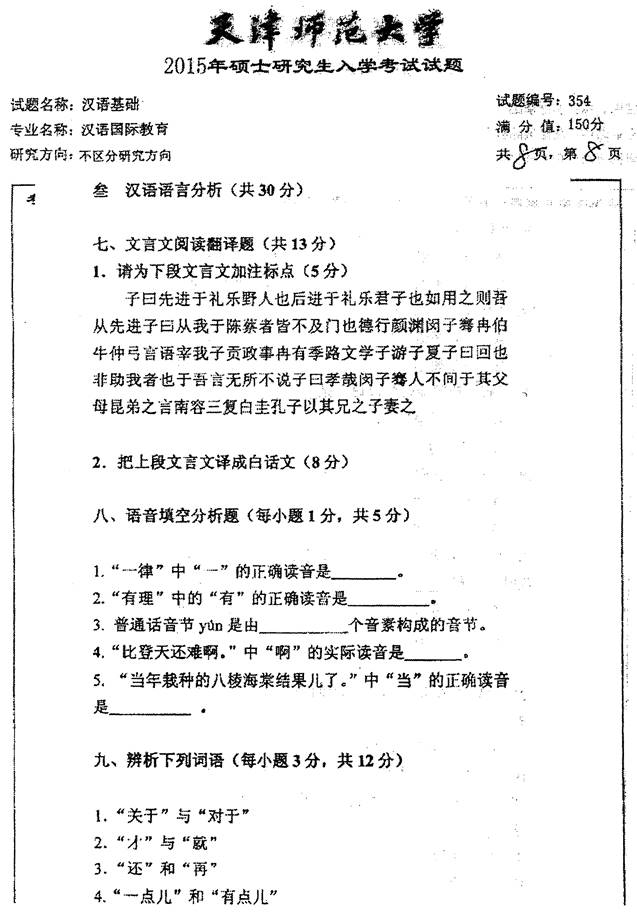 3. 汉语国际教育硕士《354汉语基础》名校考研真题