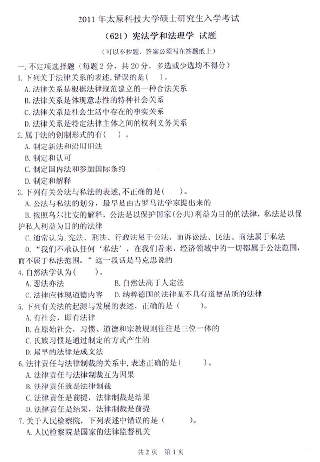1. 太原科技大学法学院《宪法学和法理学》历年考研真题汇总