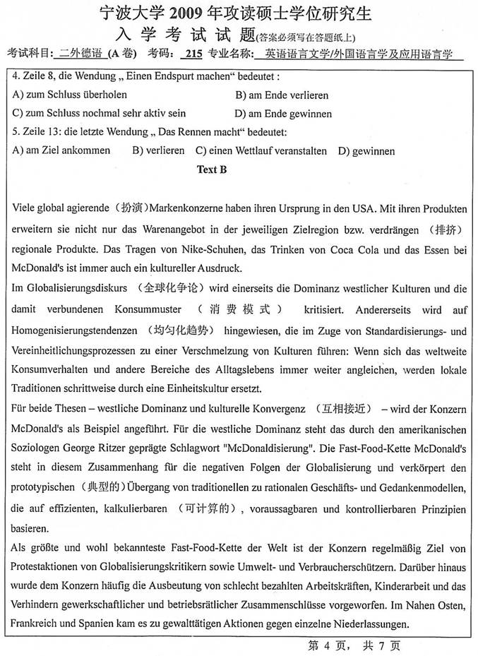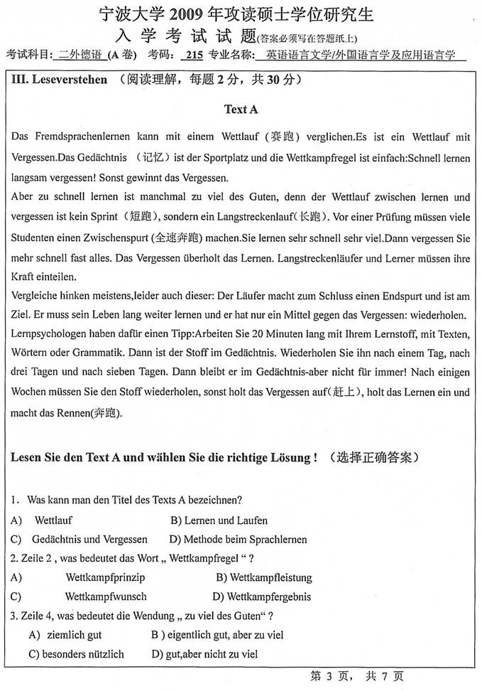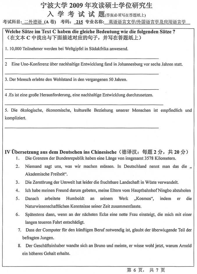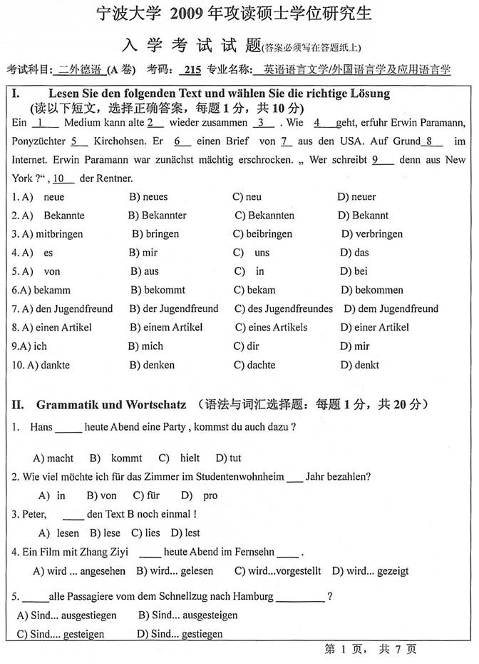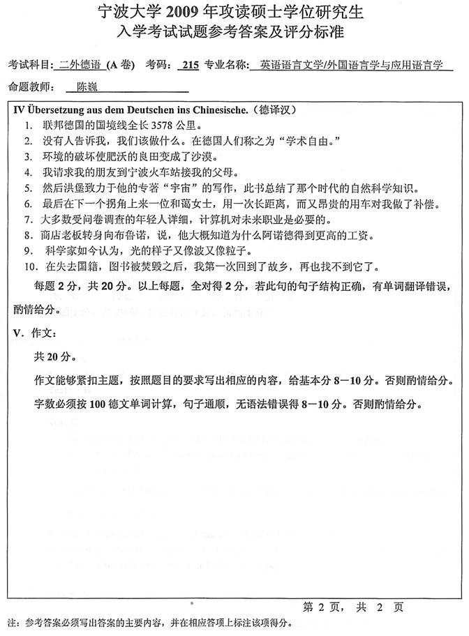 1. 宁波大学外国语学院《241德语(二外)》历年考研真题汇总(含部分答案)