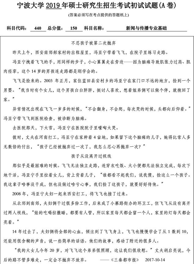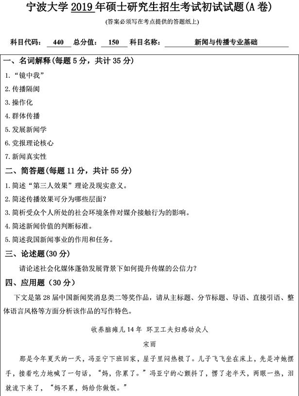 2019年宁波大学《440新闻与传播专业基础》考研真题