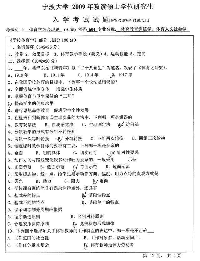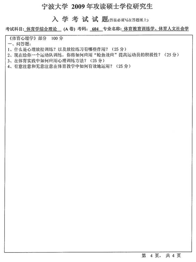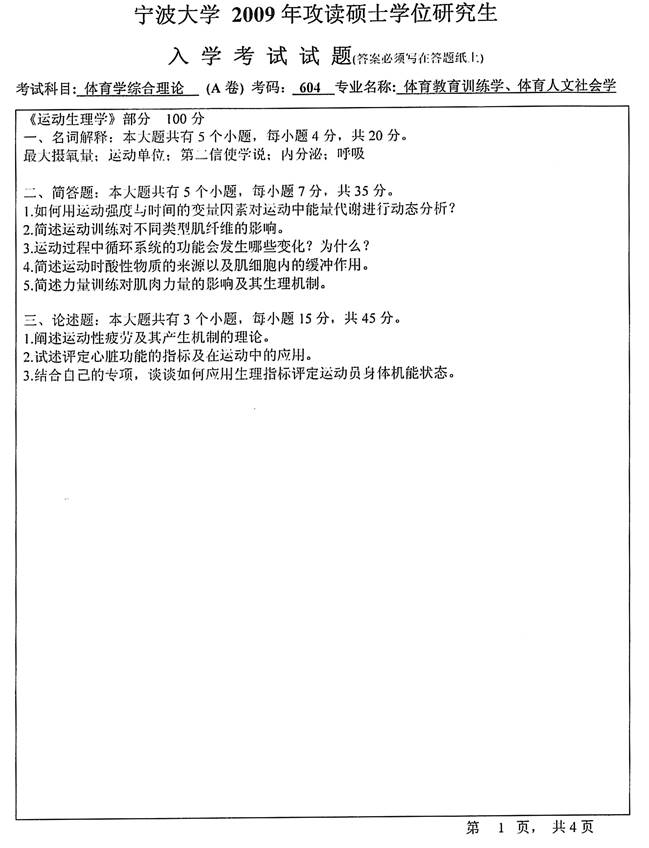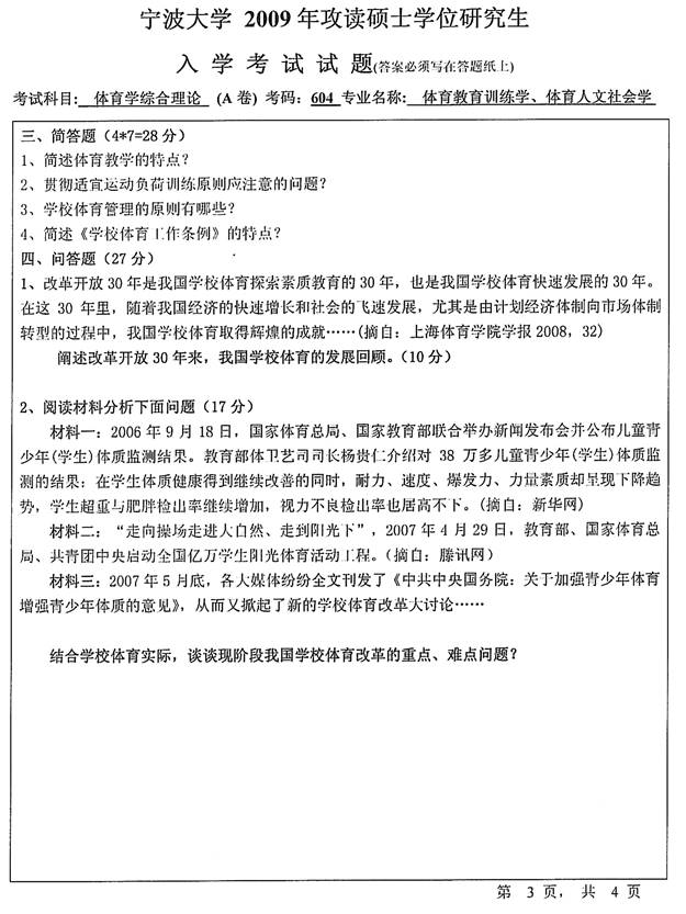 2009年宁波大学《604体育学综合理论》考研真题