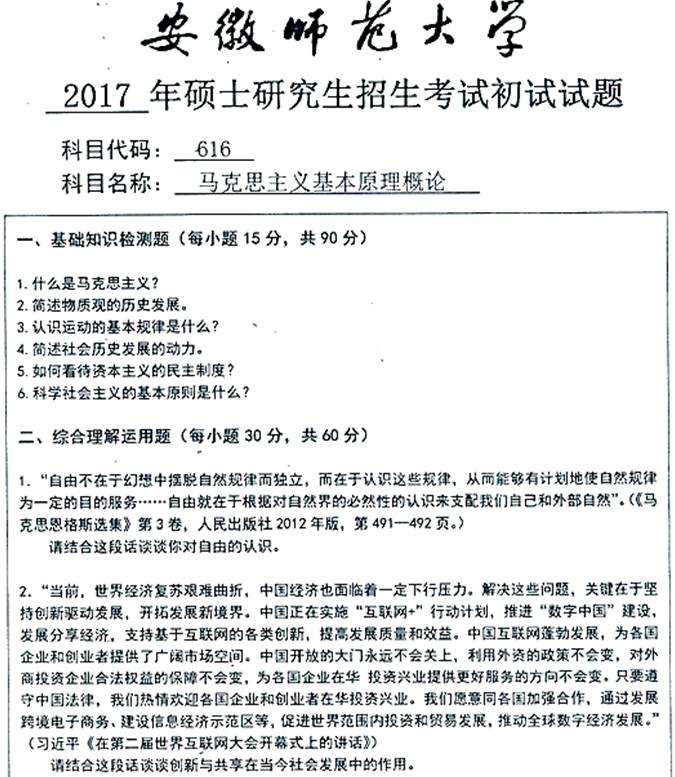 2017年安徽师范大学《616马克思主义基本原理概论》考研真题及详解