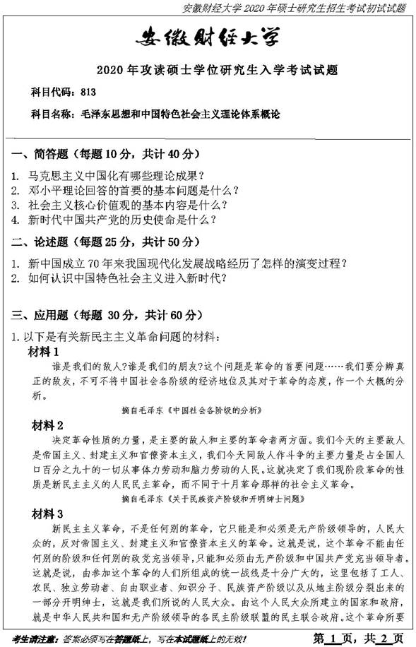 1. 安徽财经大学马克思主义学院《813毛泽东思想和中国特色社会主义理论体系》历年考研真题汇总