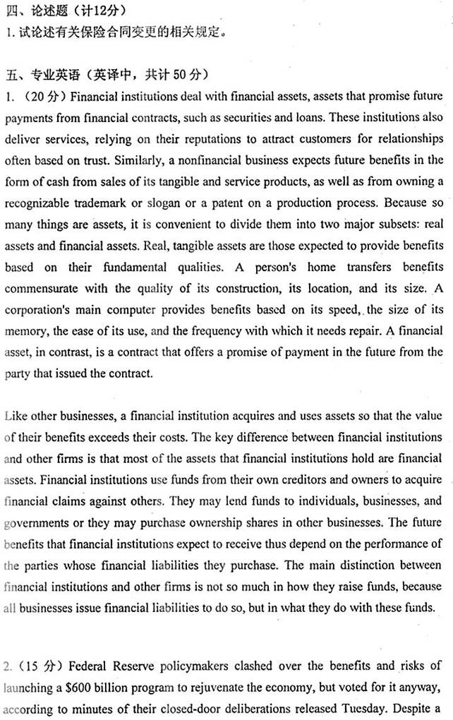 2. 全国名校保险硕士《435保险专业基础》考研真题精选