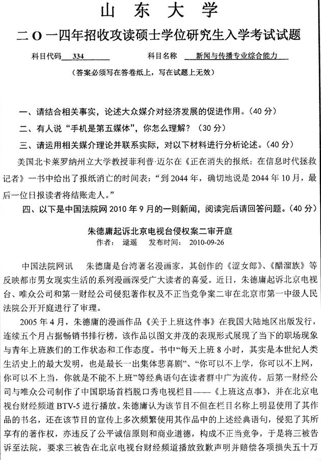 2014年山东大学《334新闻与传播专业综合能力》考研真题