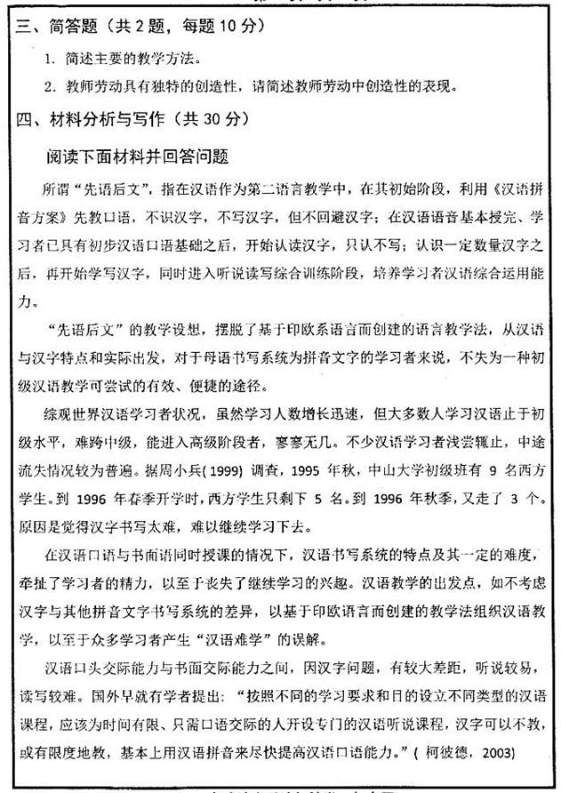 3. 汉语国际教育硕士《445汉语国际教育基础》名校考研真题