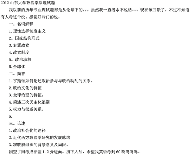 1. 山东大学《615政治学原理》历年考研真题汇总