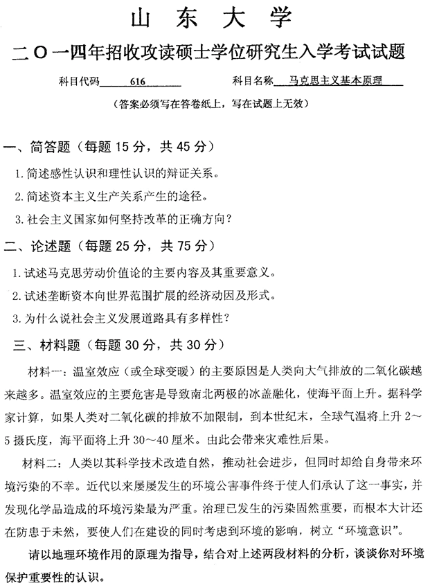 1. 山东大学《616马克思主义基本原理》历年考研真题汇总