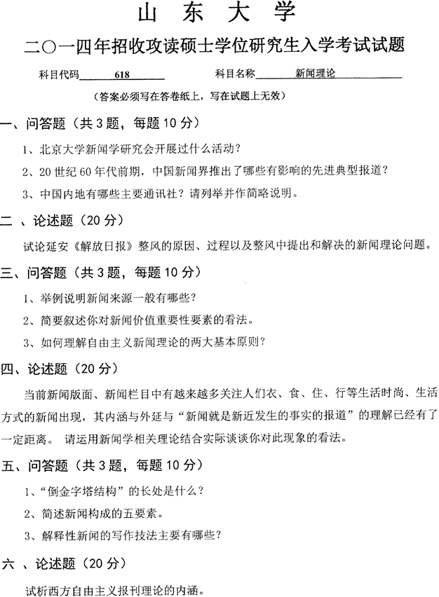 1. 山东大学《618新闻传播理论》历年考研真题汇总