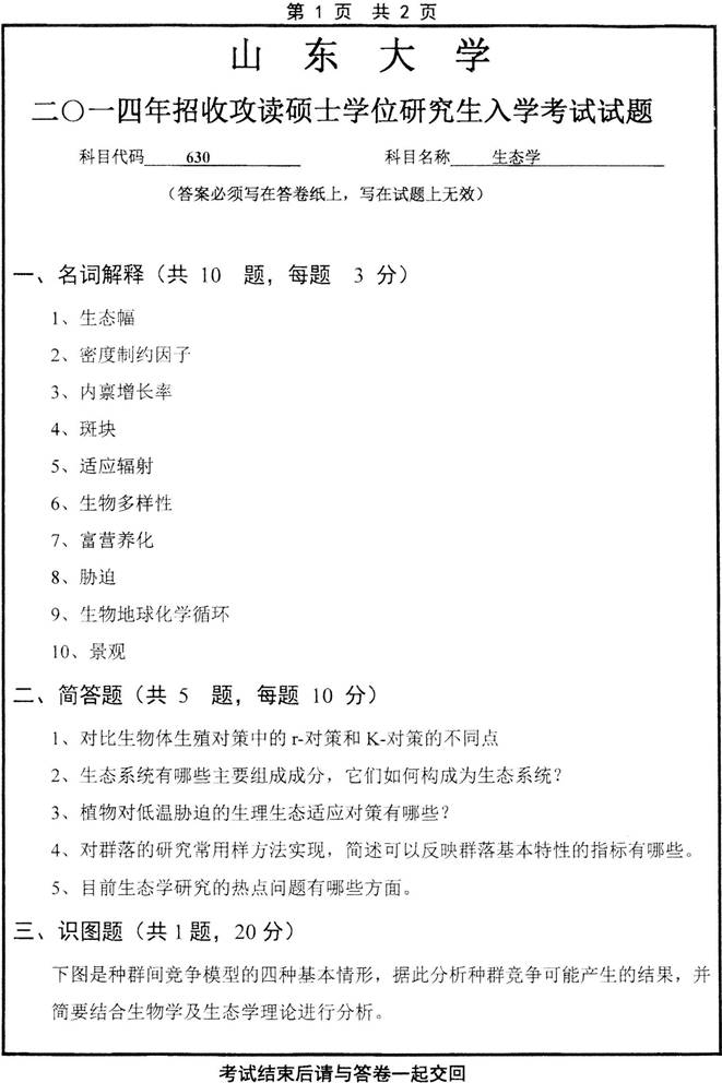 1. [电子书]山东大学《630生态学》历年考研真题汇总