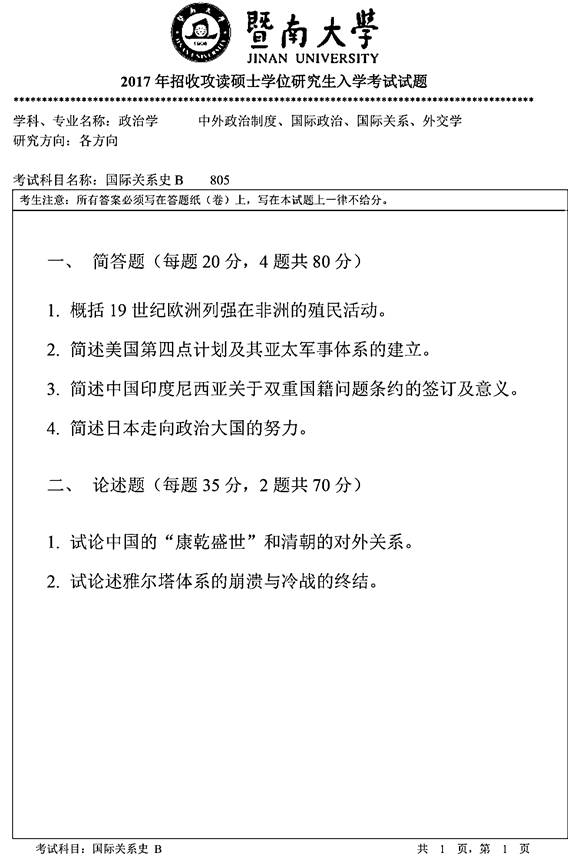 1. 全国名校国际关系综合(含国际关系史)考研真题汇总(含部分答案)
