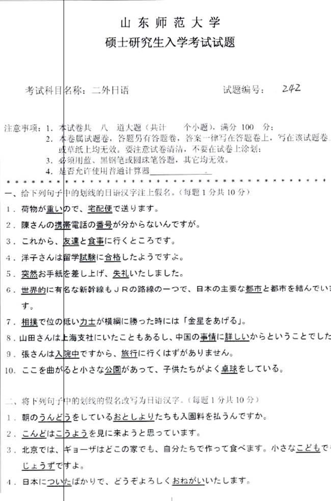 1. 山东师范大学外国语学院《242二外日语》历年考研真题汇总