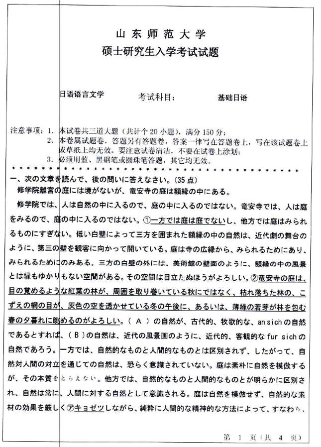 1. 山东师范大学外国语学院《713基础日语》历年考研真题汇总