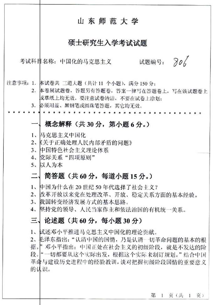 1. 山东师范大学政治与国际关系学院《803中国化的马克思主义》历年考研真题汇总