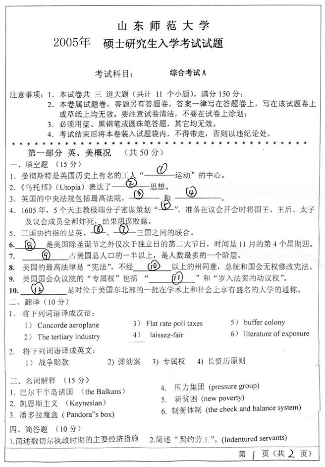 2005年山东师范大学814综合考试A(含英美概况、文学常识、现代汉语)考研真题