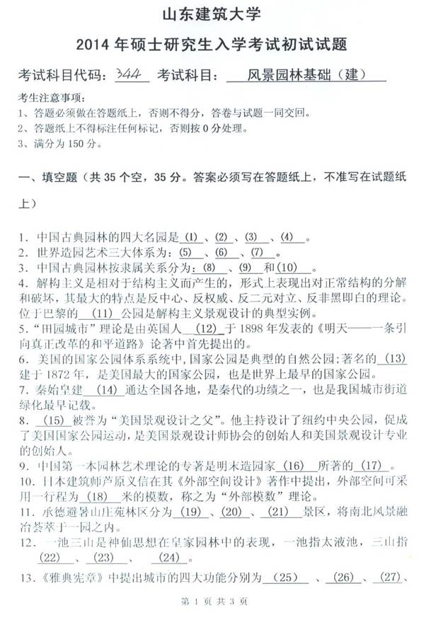 1. 山东建筑大学建筑城规学院《344风景园林基础》(建)[专业硕士]历年考研真题汇总