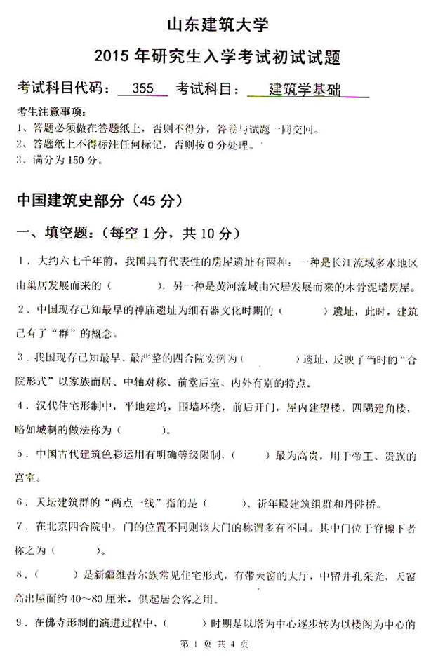 1. 山东建筑大学建筑城规学院《355建筑学基础》历年考研真题汇总