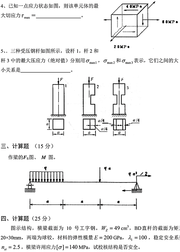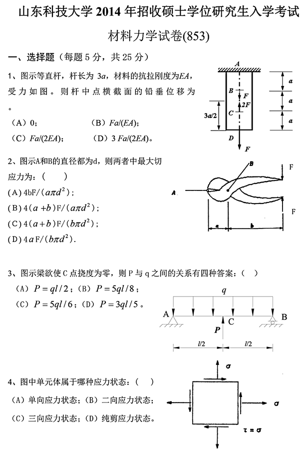 1. 山东科技大学能源与矿业工程学院《材料力学》历年考研真题汇总