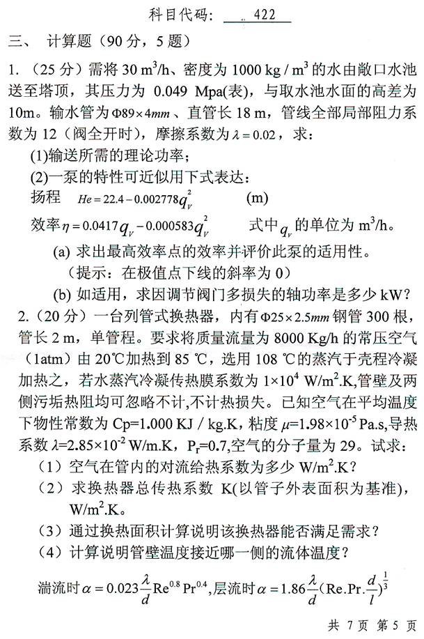 2. 全国名校化工原理考研真题汇总(含部分答案)