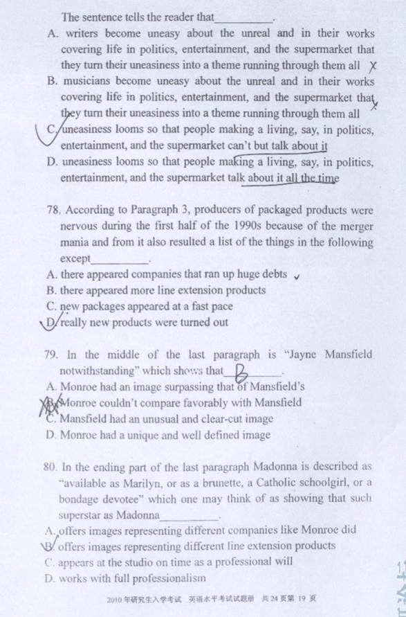 2003年广东外语外贸大学英语水平考试考研真题(含部分答案)