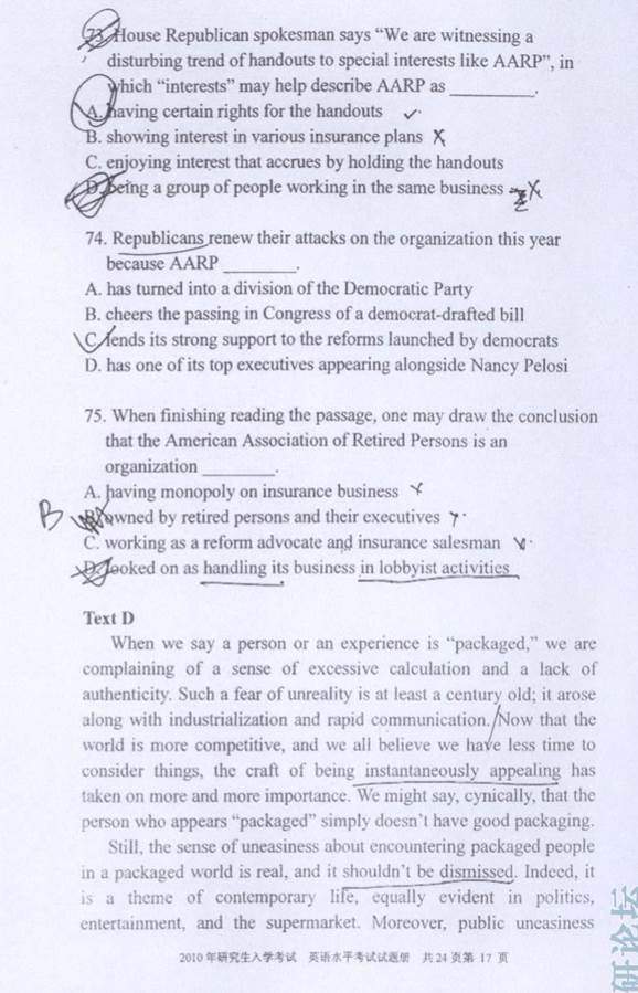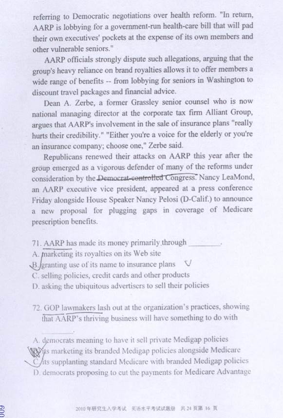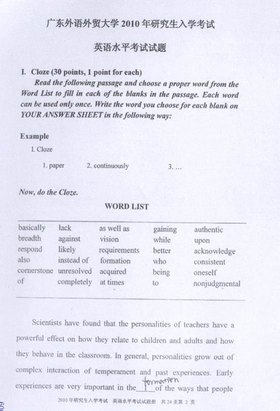 2009年广东外语外贸大学601英语水平考试考研真题(笔试样题)