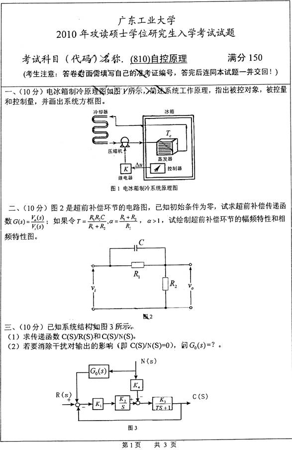 2010年广东工业大学《810自控原理》考研真题