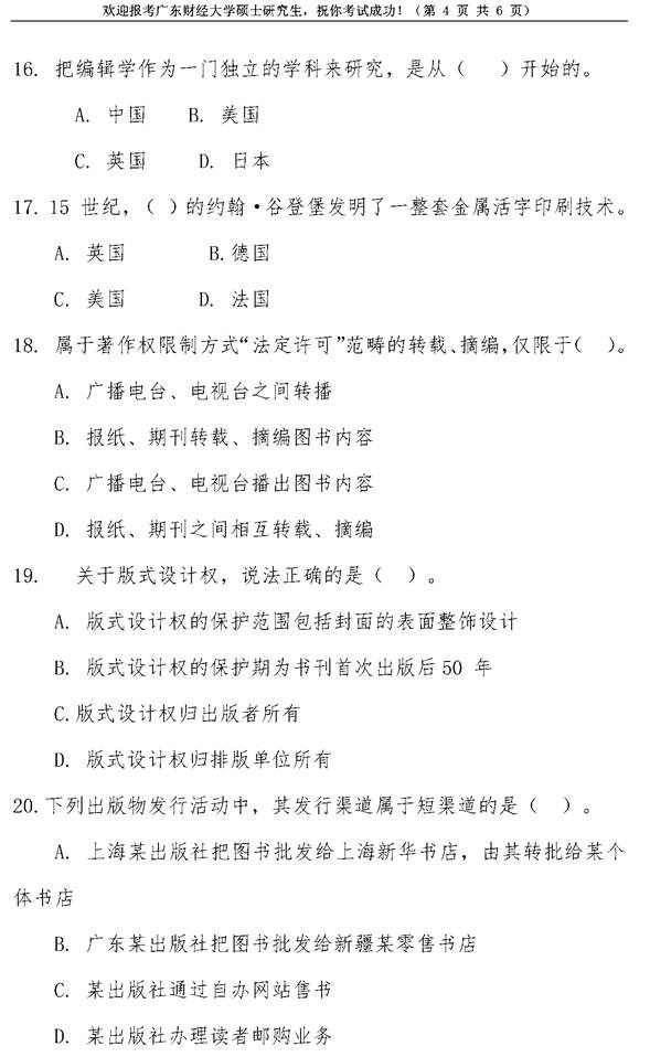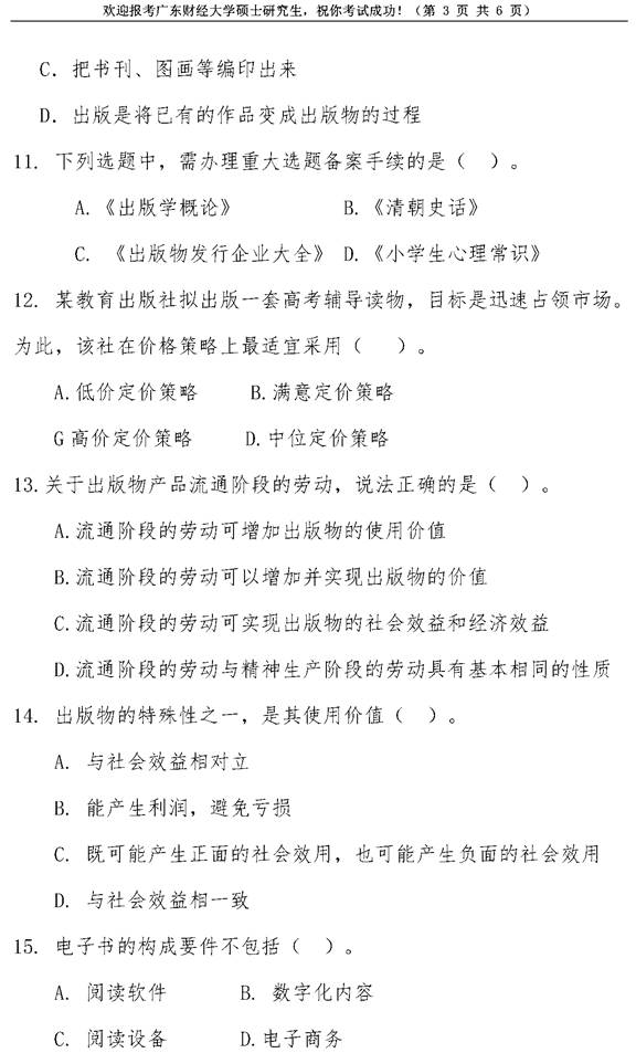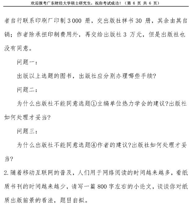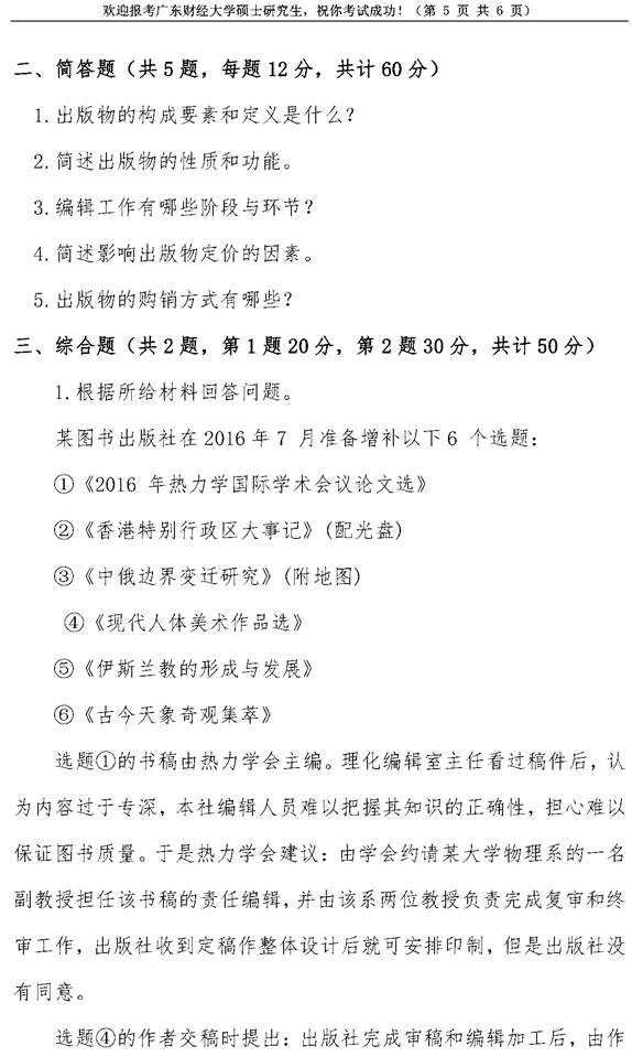2020年广东财经大学441出版专业基础考研真题
