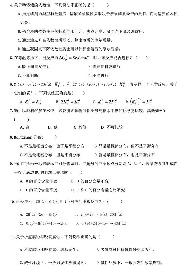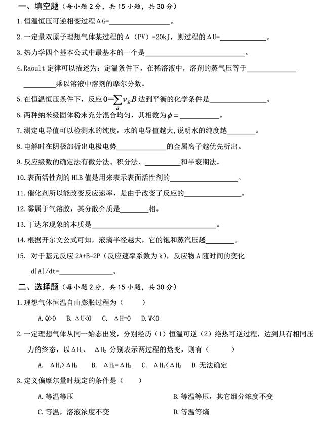 2. 全国名校物理化学考研真题汇总(含部分答案)