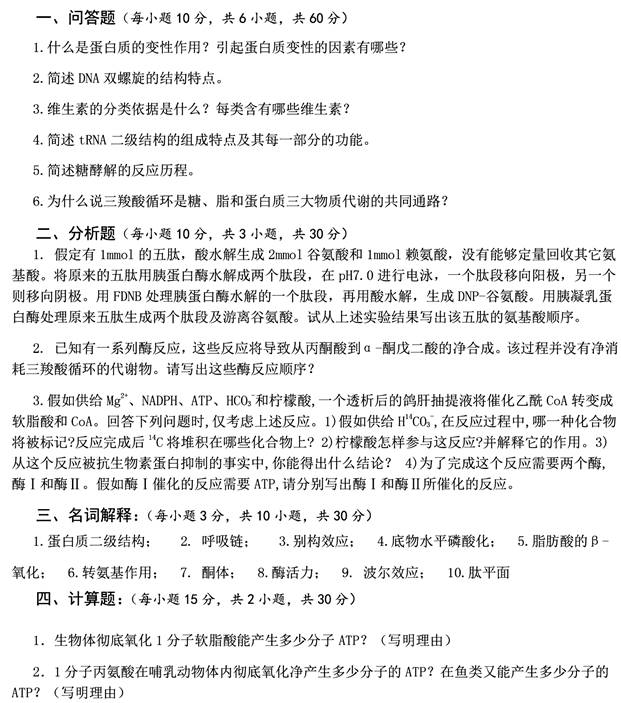 2. 全国名校生物化学考研真题汇总(含部分答案)