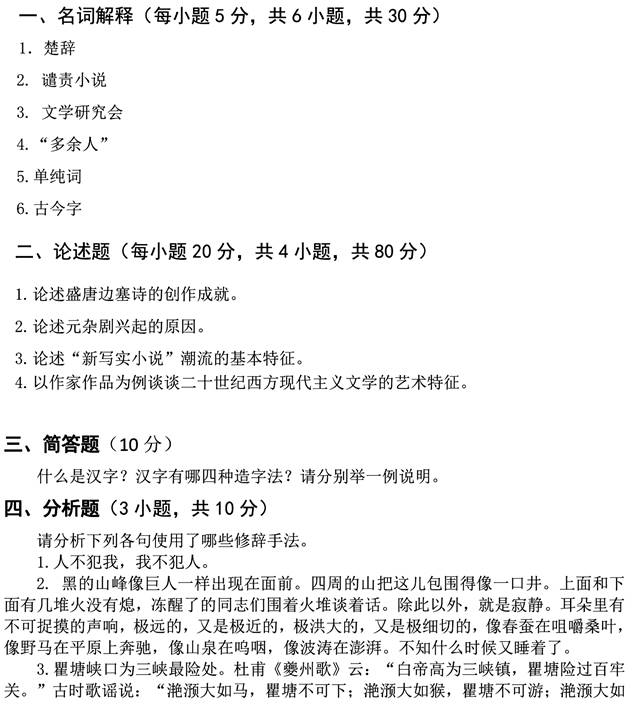 2023年广西民族大学《639中国语言文学综合》考研真题(回忆版)