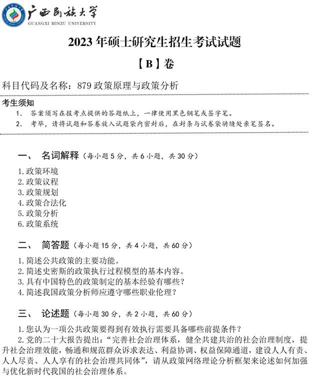 2023年广西民族大学《879政策原理与政策分析》考研真题