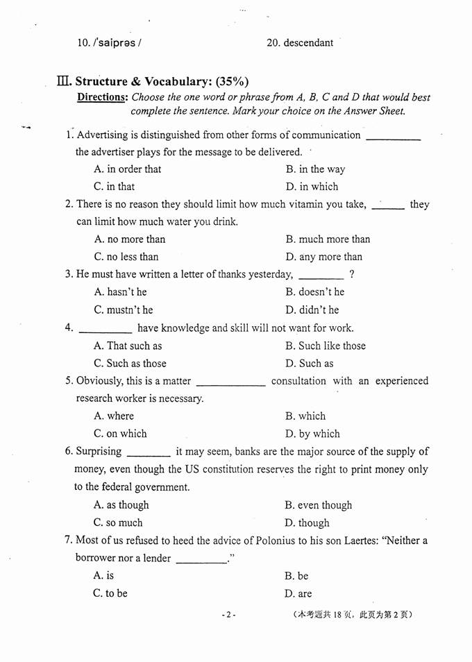 2004年成都理工大学616综合英语(语音、语法、词汇、修辞、英汉互译)考研真题