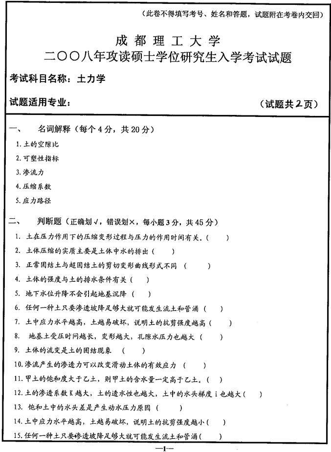 1. [电子书]成都理工大学环境与土木工程学院《819土力学》历年考研真题汇总(含部分答案)