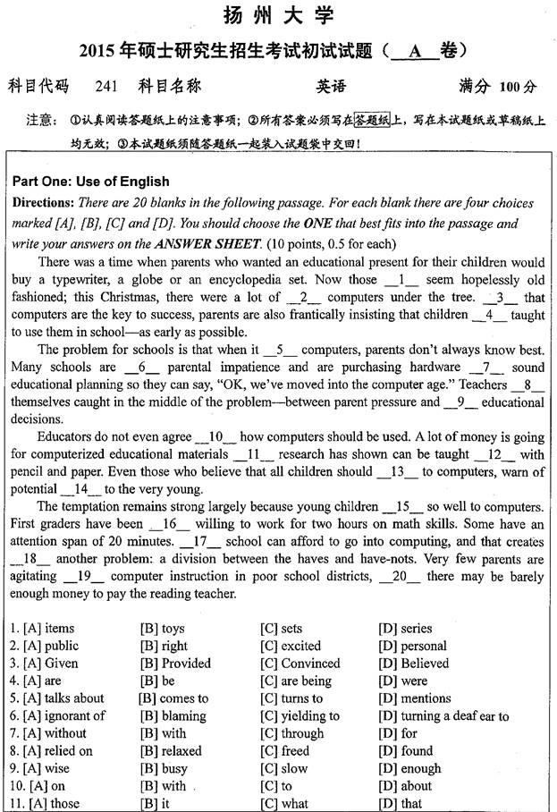 1. [电子书]扬州大学外国语学院《241英语》历年考研真题汇总