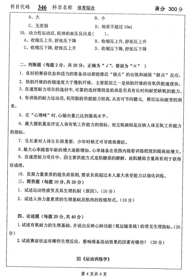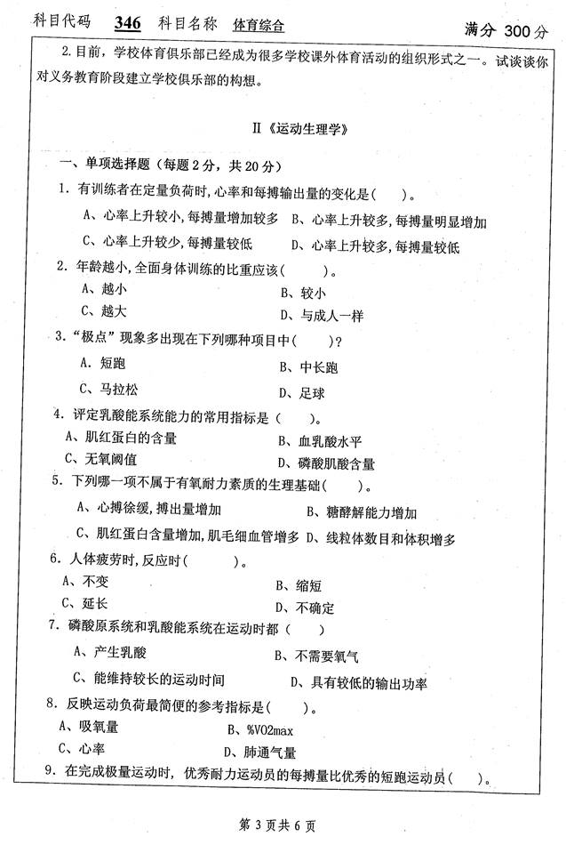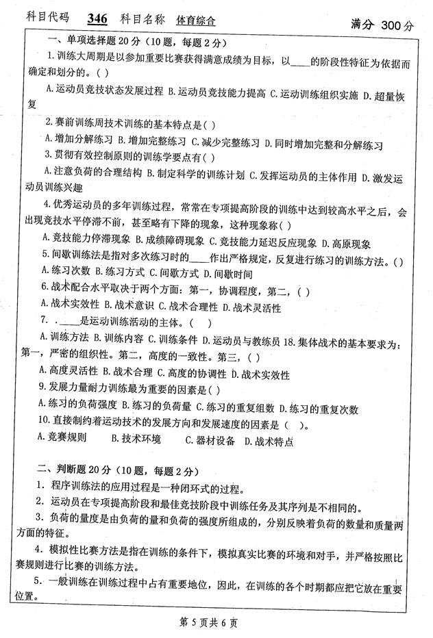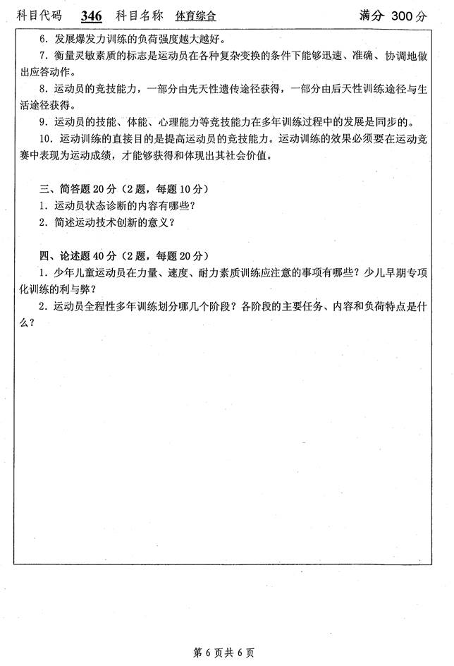 2. 全国名校体育硕士《346体育综合》考研真题汇总