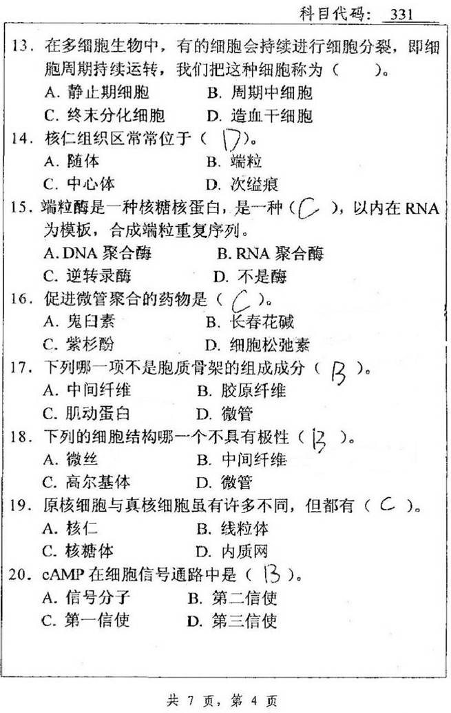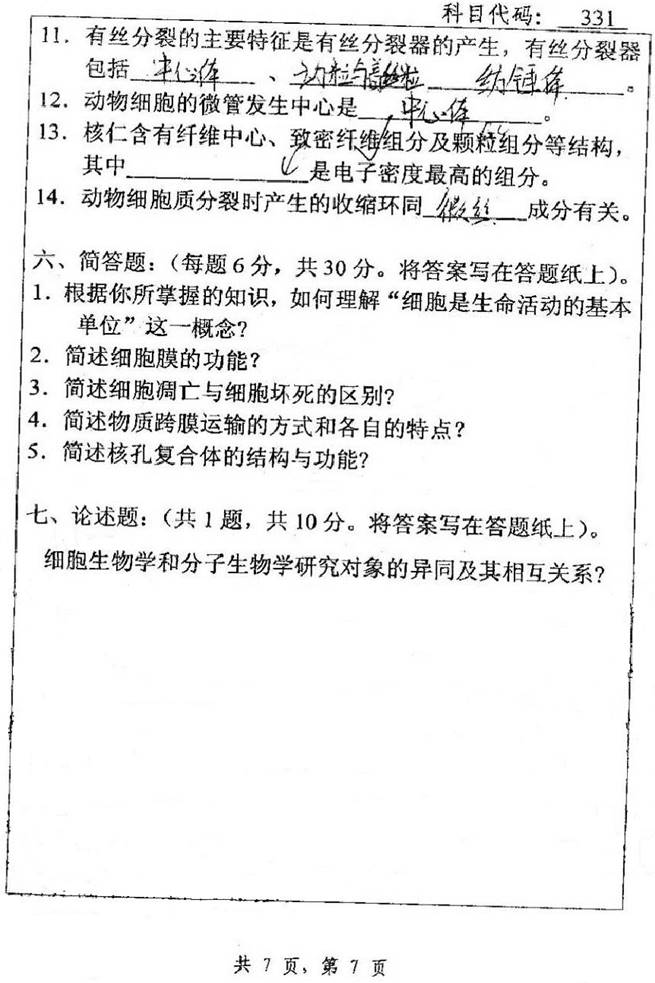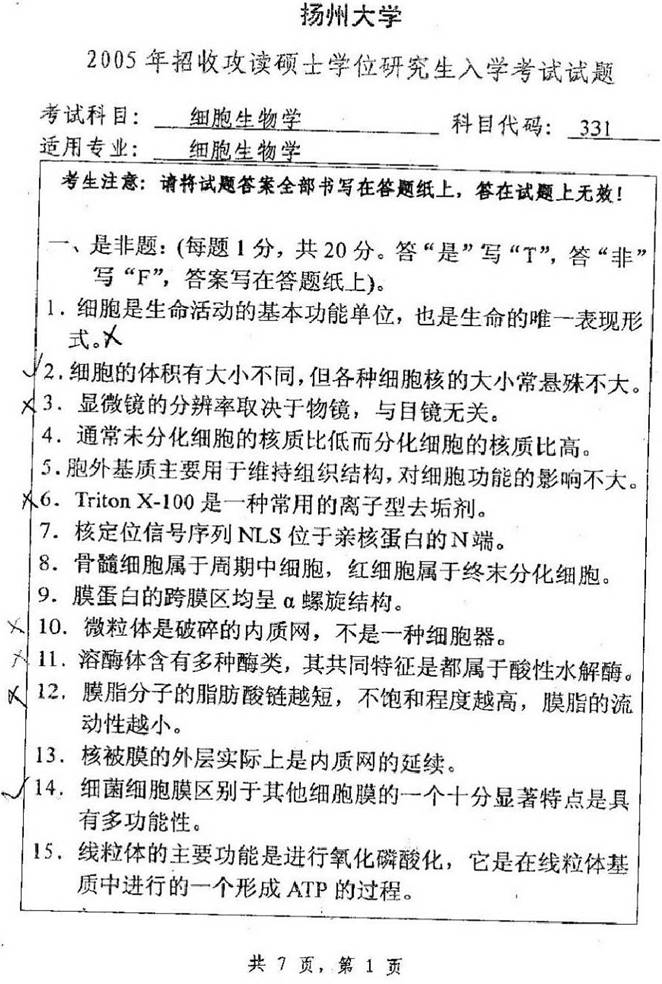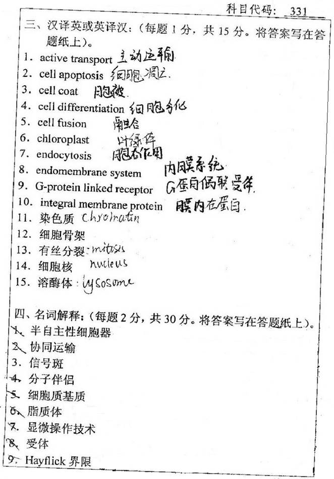 1. [电子书]扬州大学《634细胞生物学》历年考研真题汇总