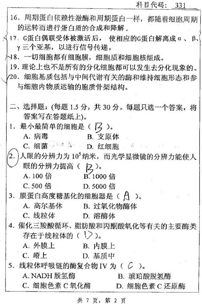 2. [电子书]全国名校细胞生物学考研真题汇总(含部分答案)