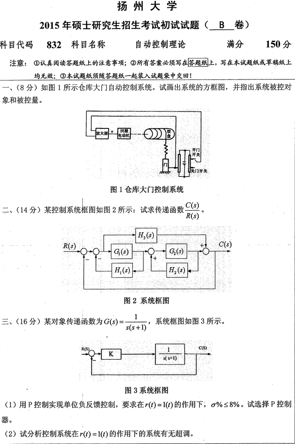 1. 扬州大学信息工程学院《832自动控制理论》历年考研真题汇总