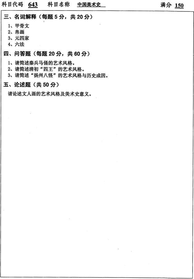 扬州大学美术与设计学院《855中国美术史》历年考研真题汇总
