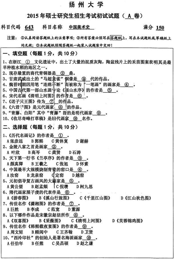 1. 扬州大学美术与设计学院《855中国美术史》历年考研真题汇总