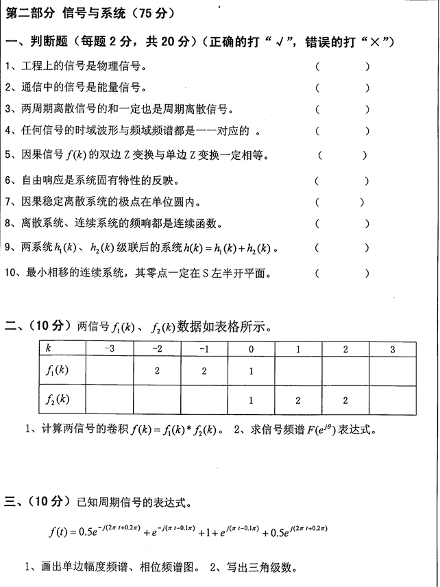 2. 全国名校信号与系统考研真题