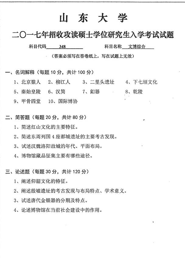 1. [电子书]文物与博物馆硕士《348文博综合》名校考研真题汇总