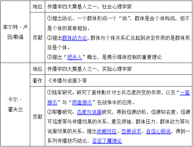 【考点拓展】传播学的四大奠基人(见表1-15)