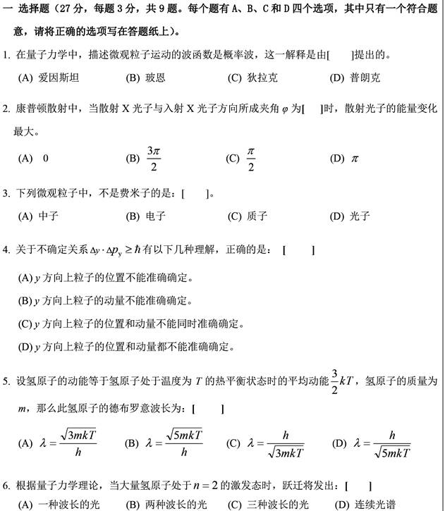 2. 全国名校量子力学考研真题汇总