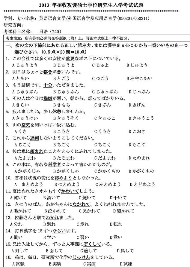 1. 暨南大学外国语学院《240基础日语》历年考研真题汇总
